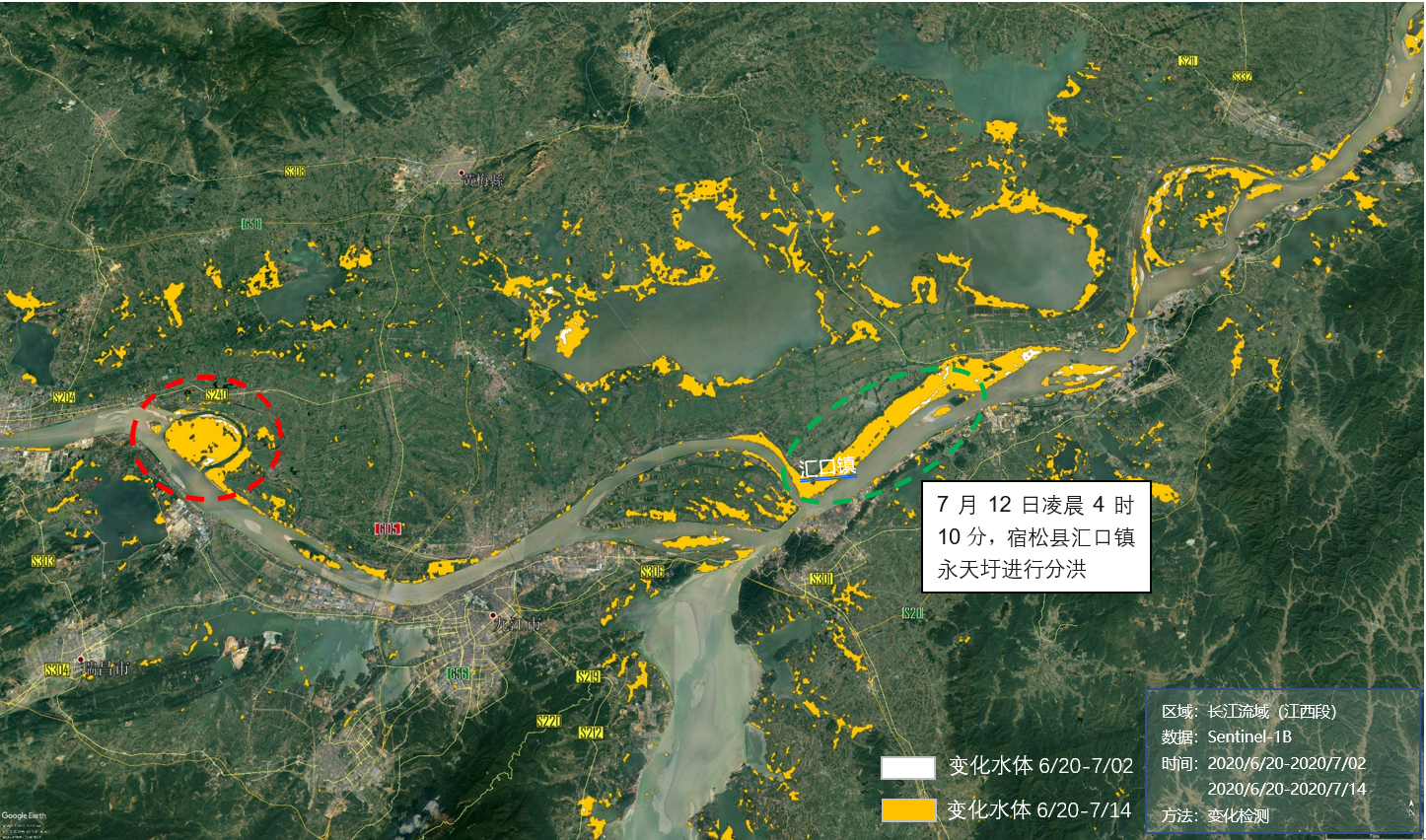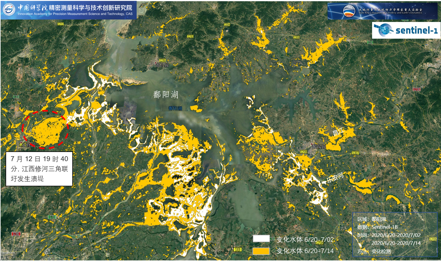凯发K8利用雷达卫星数据成功发布2020年长江中游汛期水情变化图
