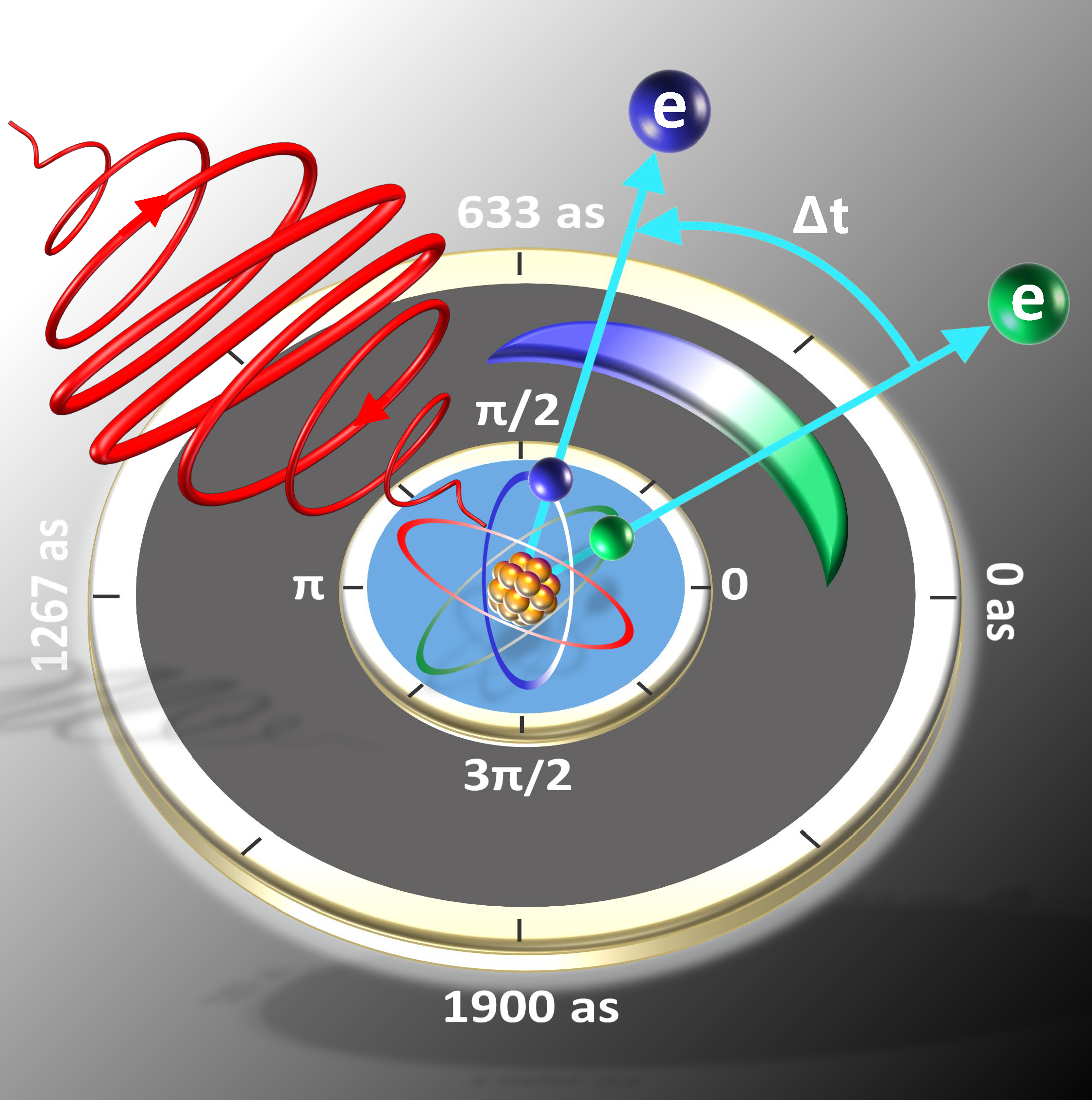 在阿秒时间尺度上揭示物质内部电子动力学规律,是认识和理解自然界诸多超快光物理和光化学过程的重要物理基础。为此,2023年诺贝尔物理学奖被授予在阿秒物理研究领域做出杰出贡献的三位科学家。在众多阿秒测量谱学技术中,阿秒角度条纹技术(亦称“阿秒钟”)因其自参考特性——无需使用阿秒光脉冲,仅利用飞秒激光脉冲即可实现阿秒量级时间分辨率的测量,为深入探究阿秒电子动力学过程给予了独特手段。“阿秒钟”技术已成功应用于强场电子隧穿时间、顺序双电离中两电子电离时间延迟等测量中,然而,传统的“阿秒钟”技术受限于所采用的椭圆偏振光脉冲,尚无法直接应用于如电子-电子关联等更复杂物理过程的研究。